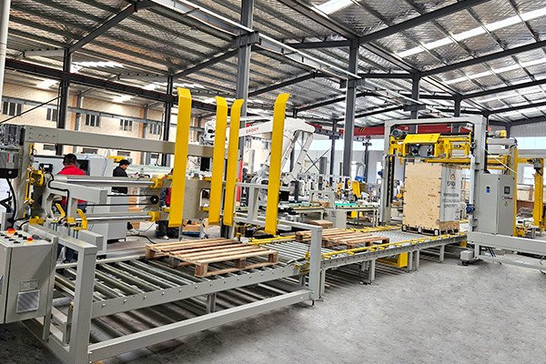 電動(dòng)工具托盤碼垛通過(guò)式覆頂膜纏繞捆扎包裝線,是由自適應(yīng)型供棧機(jī)、機(jī)器人碼垛機(jī)、棧板穿劍捆扎機(jī)、通過(guò)式覆頂膜機(jī)以及搖臂式纏繞包裝機(jī)組合而成。自適應(yīng)型供棧機(jī)可根據(jù)不同托盤尺寸,自動(dòng)調(diào)整機(jī)器并分配托盤,節(jié)省了人工換產(chǎn)的時(shí)間。
