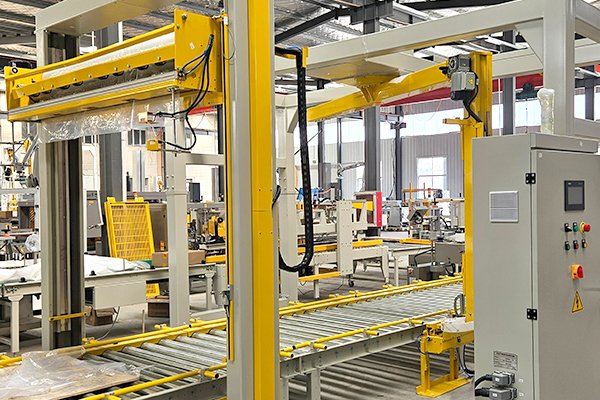 通過(guò)式覆頂膜機(jī)與搖臂式纏繞包裝機(jī)的組合,每個(gè)工序由獨(dú)立工位完成,節(jié)省了包裝時(shí)間,提高工作效率,是高效自動(dòng)化產(chǎn)線的不二選擇。該套線體還可以配自動(dòng)托盤貼標(biāo)機(jī)和自動(dòng)標(biāo)簽打印機(jī),實(shí)現(xiàn)混產(chǎn)線體的即貼即打。