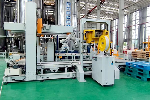 該碼垛機(jī)最大特點(diǎn)是負(fù)載大,可同時(shí)碼2個(gè) 200kg的鐵桶,線體后端可配合捆扎機(jī)或托盤在線纏繞機(jī),實(shí)現(xiàn)對桶的固定。多用于液體膠、硅橡膠等化工行業(yè)以及潤滑油等液體類行業(yè)使用。
