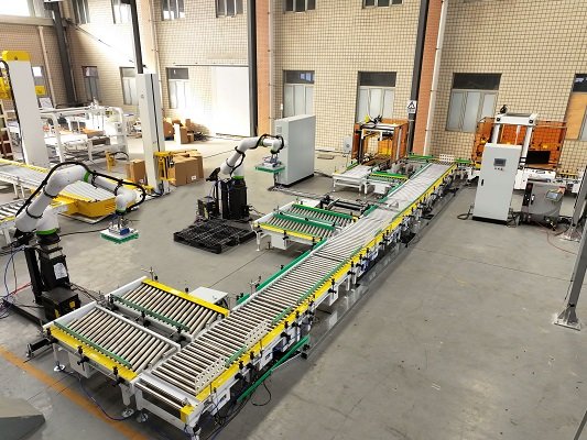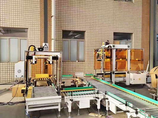 全自動伺服封箱機是采用伺服電機為主要驅(qū)動機構(gòu),針對不同紙箱的混產(chǎn)情況,用戶可提前將所有紙箱錄入封箱機內(nèi),由上位機與封箱機通訊,可實現(xiàn)紙箱的一鍵換產(chǎn),一字封與工字封可任意切換和選擇,尾端配有貼標和移載機構(gòu),由光電識別將不同的紙箱碼到不同的托盤上,該線體配備了進口協(xié)作式機器人,立柱可升降,充分滿足不同高度及垛型的需求。性能更穩(wěn)定,占地面積小,成本低。