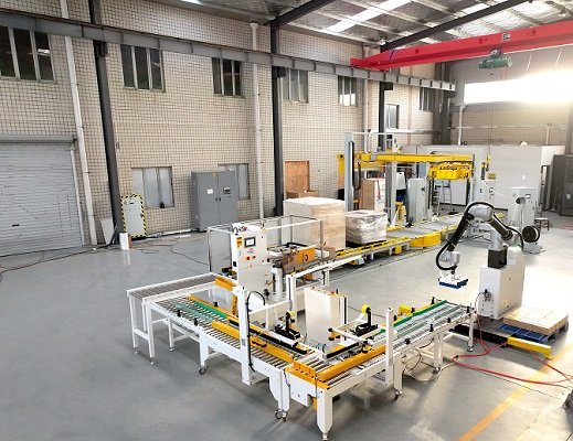 玉米面條十字封箱機是由開箱機、折蓋封箱機、90度轉(zhuǎn)向機構(gòu)、半自動一字封箱機以及協(xié)作機器人碼垛機組成,該線體根據(jù)用戶現(xiàn)場比較緊湊的實際情況而設(shè)計,開箱機出料口高度較高,在成品紙箱上面,成品紙箱輸送機2側(cè)坐人進行裝箱,抬手即可拿取空紙箱,大大減少了設(shè)備的占地面積,同時方便用戶的實際操作。尾端配備協(xié)作機器人碼垛機,占地面積小,成本低,雙抓設(shè)計,工作效率高,特別適用食品類小紙箱的開封箱碼垛包裝。