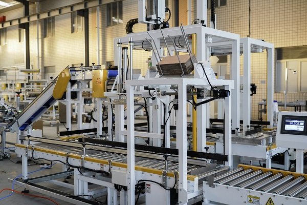 玉米種子包裝線是一條比較典型的自動化包裝線體,該線體是由熱熔膠開箱機、自動裝箱機、熱熔膠封箱機、稱重剔除機、貼標機以及動力輸送機組成。同時該機還應(yīng)客戶要求,在裝箱工位增加了自動放置墊板工序,使得整條線體的包裝流程更加智能更加流暢。