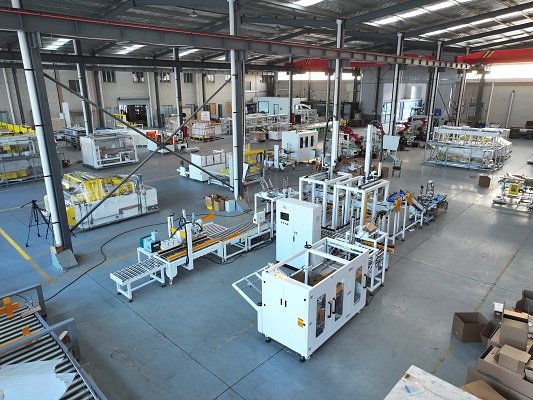 該線體將兩條包裝線合流在一起,共用一套開箱機和封箱機,既節(jié)省場地,又降低成本。尾端其實也可以配置紙箱的在線捆扎以及托盤的碼垛設(shè)備,形成紙箱以及托盤的全產(chǎn)線自動化包裝。
